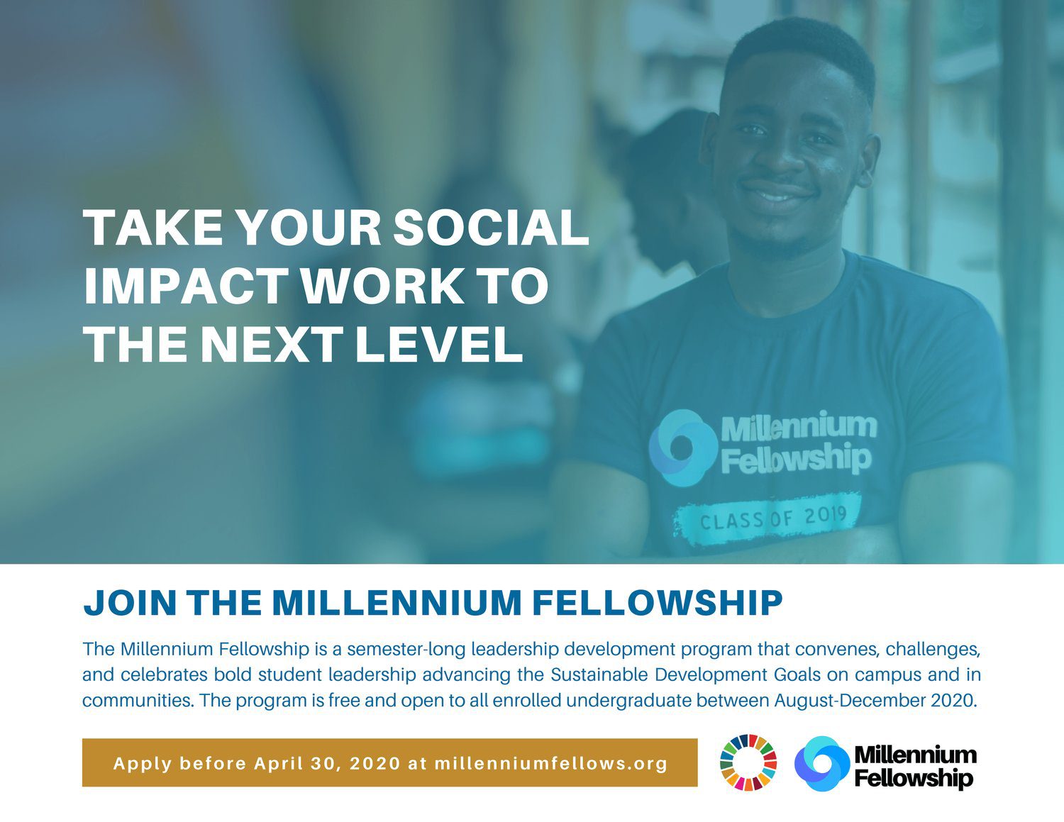 Applications are now open for the 2026/2027 United Nations Academic Impact/MCN Millennium Fellowship. The United Nations Academic Impact and MCN proudly present the Millennium Fellowship. The Fellowship is a semester-long leadership development program on your campus to take your social impact to the next level.